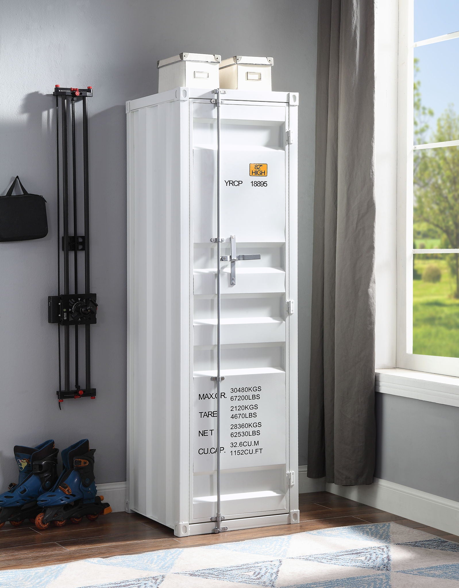 - Industrial Design: Featuring recessed cargo container-style panels and a full-length container lock, it provides a modern, rugged look while ensuring that your stored items are secure.