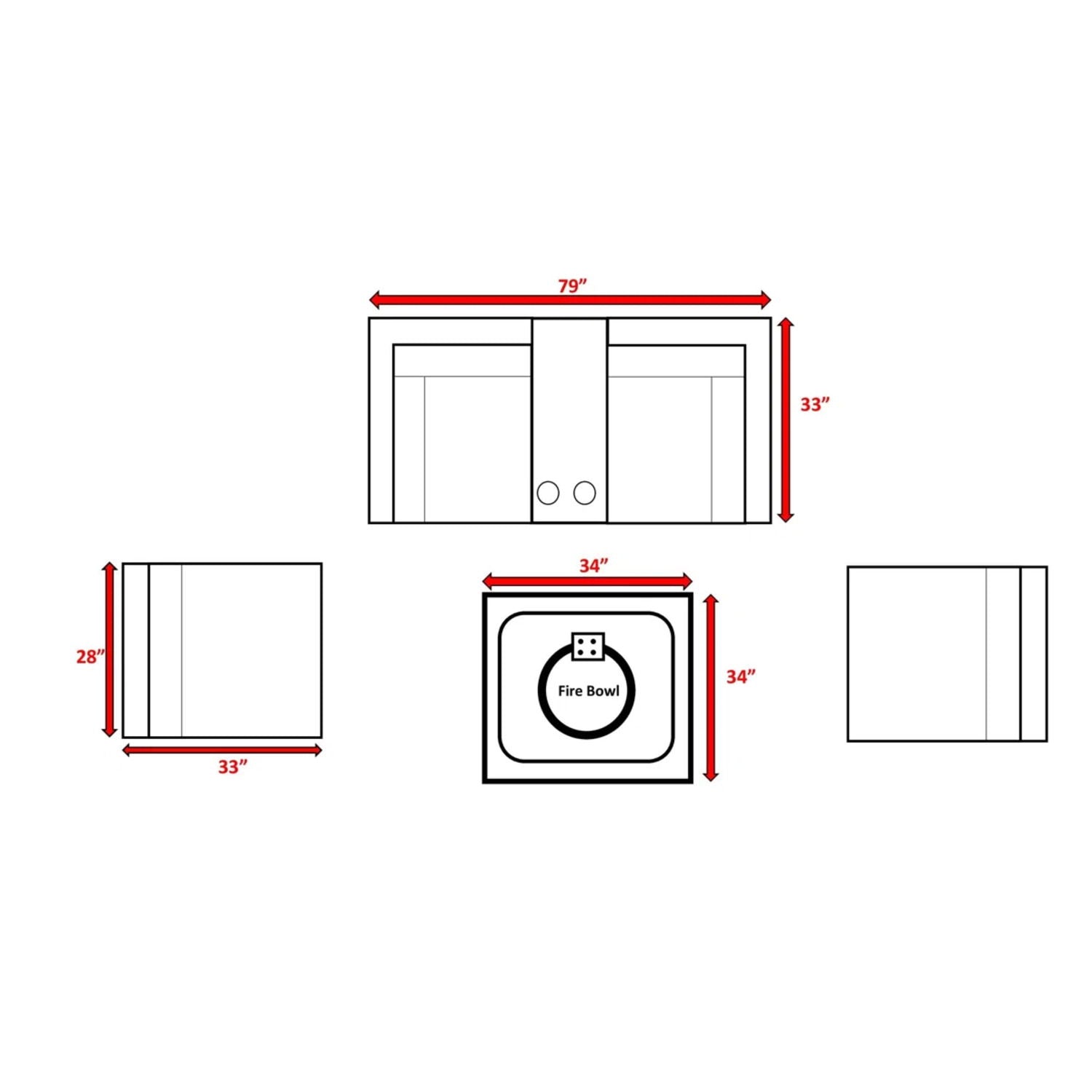 - Comprehensive Set: Includes a modular sofa, 2 club chairs, and a 40,000 BTU propane fire pit with a matching cover.