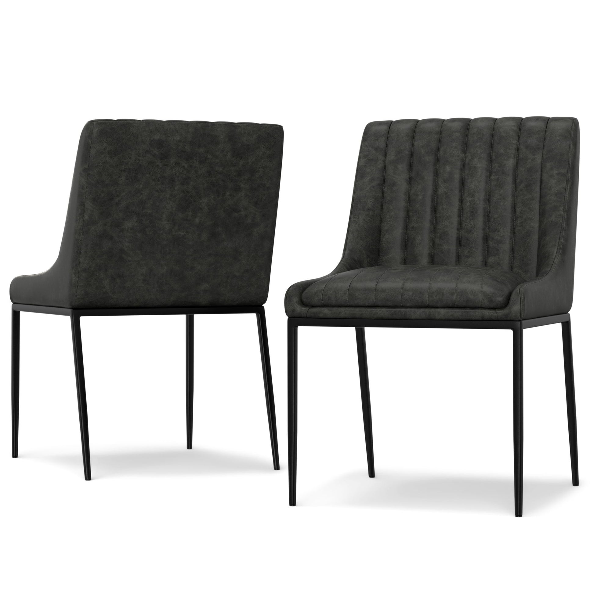 - Set of 2 dining chairs upholstered in distressed for a rich, textured aesthetic.